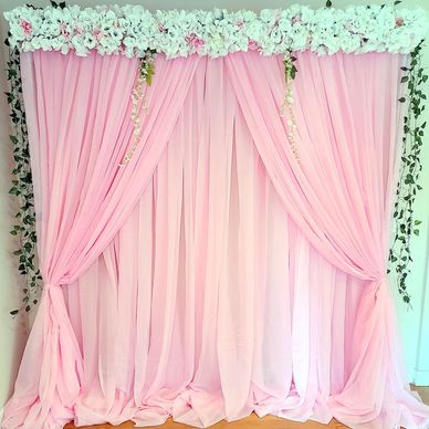 8ft x 10ft flowy sheer drapes with fairy lights and sectioned florals arrangements
